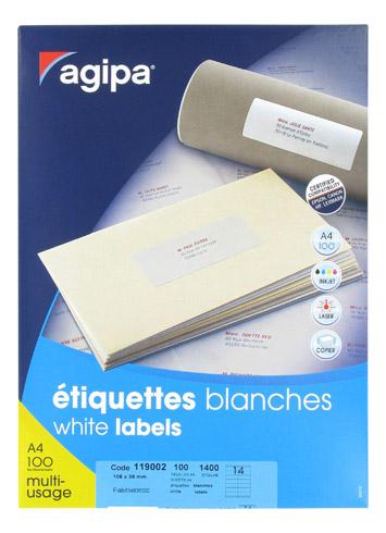 ETIQUETTE ADRESSE MULTI-USAGES 105 X 39 MM AGIPA 119002 BLANCHE - BOÎTE DE 1400