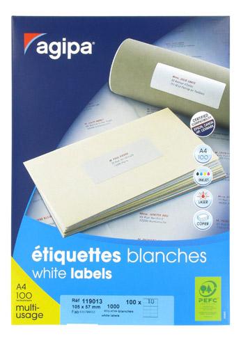 ETIQUETTE ADRESSE MULTI-USAGES 105 X 57 MM AGIPA 119013 BLANCHE - BOÎTE DE 1000