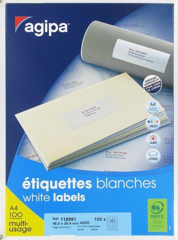 ETIQUETTE ADRESSE MULTI-USAGES 48,5 X 25,4 MM AGIPA 118991 BLANCHE - BOÎTE DE 4000