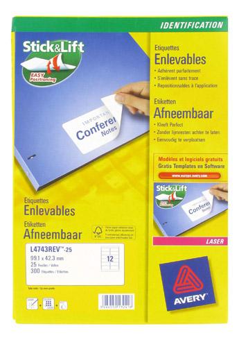 ETIQUETTE ENLEVABLE JET D'ENCRE ET LASER 99,1 X 42,3 MM AVERY L4743-25 BLANCHE - POCHETTE DE 300