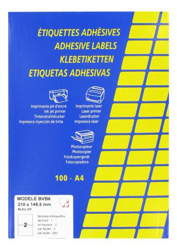 ETIQUETTE JET D'ENCRE ET LASER 210 X 148,5 MM BLEUE - BOÎTE DE 200