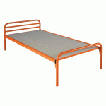 Pied 1 traverse en tube métallique.Cadre tubulaire section 50 x 30 mm avec 2 traverses soudées pour recevoir le sommier.Sommier aggloméré avec 10 trous d\'aération.Plan de couchage hauteur 36,5 cm (hors matelas).Hauteur utile sol/sommier : 33,5 cm.Livré prêt à monter avec notice.