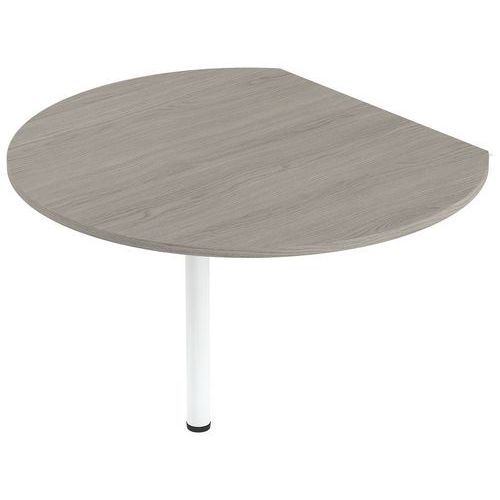 Extension ronde 105 x 120 cm pour bureau Isia Finition : Mélaminée Garantie client : 10 ans Hauteur : 74 cm Largeur hors tout : 120 cm Livré monté : non Matériau : Aggloméré Piétement coloris : Blanc Piétement matériaux : Acier Plateau coloris : Chêne gris Plateau épaisseur : 25 mm Plateau matériau : Aggloméré Profondeur hors tout : 105 cm Type de piétement : En I Type d'élément de bureau : Extension Plateau en panneau de particules agglomérées haute densité (680 kg/m3) et classé non feu catégorie M3 revêtu de mélaminé épaisseur 25 mm. Chant épaisseur 2 mm plaqué avec de la colle thermo fusible sur la périphérie du panneau. Des inserts métalliques intégrés sous le plateau pour faciliter le montage et remontage. Pied de soutien. Extension ronde 105 x 120 cm pour bureau Isia, Type de piétement: En I, Largeur hors tout: 120 cm, Type d'élément de bureau: Extension, Profondeur hors tout: 105 cm, Plateau matériau: Aggloméré, Plateau coloris: Chêne gris, Piétement coloris: Blanc, Hauteur: 74 cm, Livré monté: non, Matériau: Aggloméré, Piétement matériau: Acier, Plateau épaisseur: 25 mm, Finition: Mélaminée