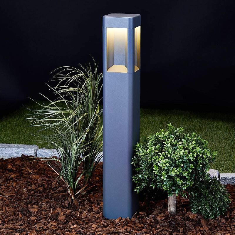 La borne lumineuse LED Jeny, d\'aspect minimaliste, avec sa surface sombre La surface du corps en aluminium de la borne lumineuse ...