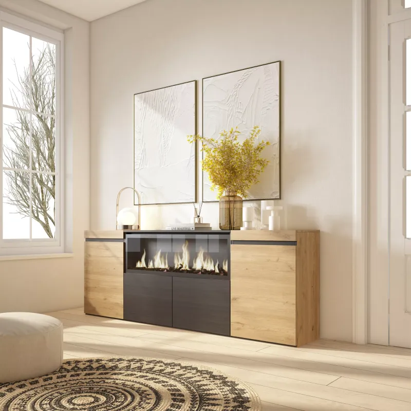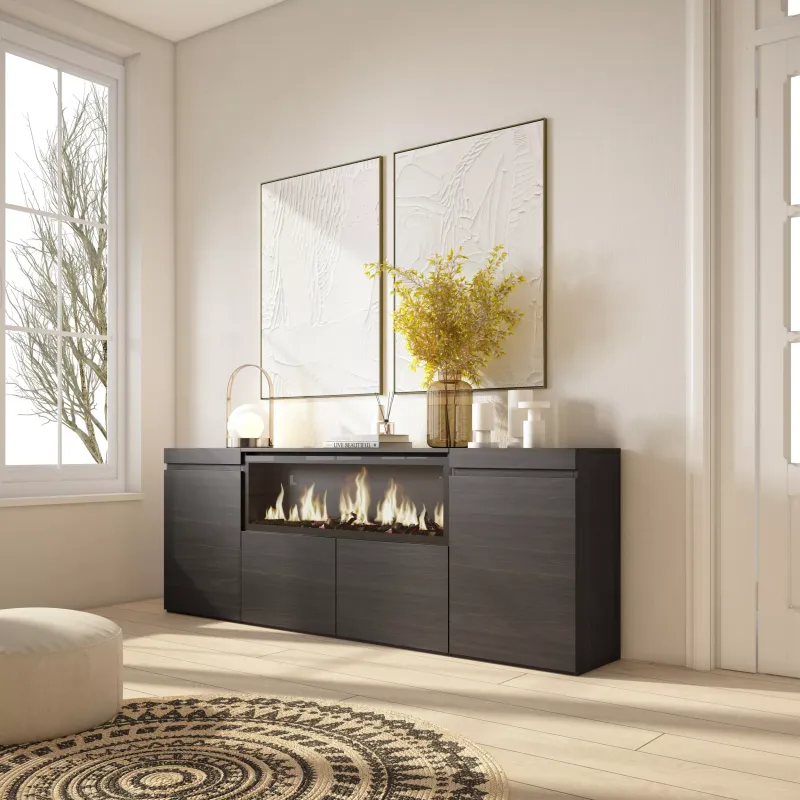 Cheminée électrique à LED. Dimensions: 107cm de large, 32cm de haut. Effet de feu 3D incroyablement réaliste. Pas de risque de brû ...