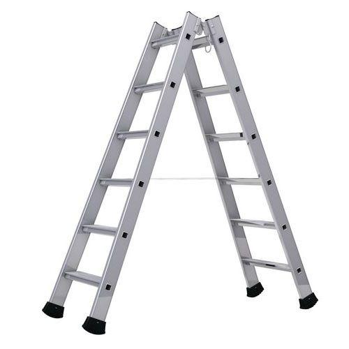 Echelle en aluminium transformable avec 3 plans<br>Avec 9 x 3 échelons carrés 30 x 30 mm (espacés de 280 mm)<br>5 posi ...
