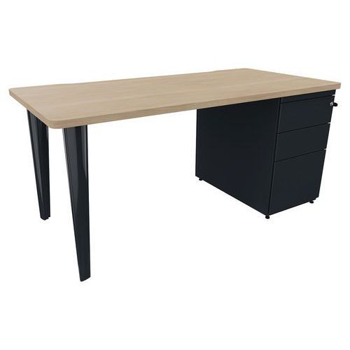 Bureau droit Evidence avec caisson porteur et 2 pieds Vinco Approche écoresponsable : oui Chant matériau : ABS Écolabel NF E ...
