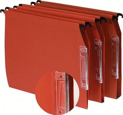 Dossiers suspendus en kraft orange 1er prix pour armoire, fond 30 mm (renforcé).Jupe en kraft collée 220 g/m2.Barrettes de suspens ...