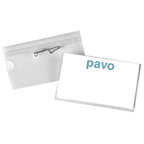En plastique, format paysage, ouverture au dessus etlatérale, 1 insert papier blanc pour chaque badge,contenu: 50 ...