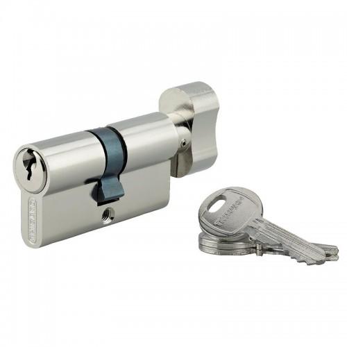 Demi-cylindre à bouton en laiton nickelé de la gamme Europa Sécurité anti-crochetage Norme 16010C42 Marque : DORMAKABA D&e ...