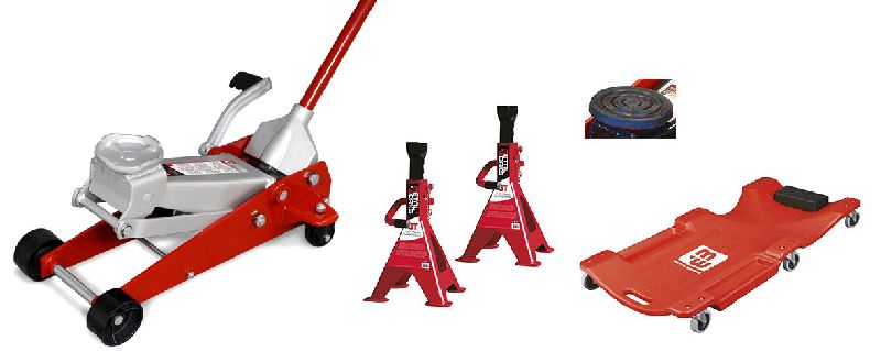 Cric rouleur hydraulique en aluminium/acier, avec unecapacité de 1,5 tonne. Caractéristiques : Construction de base très légère en ...