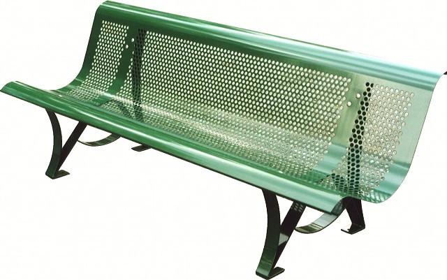 Assise et dossier en acier galvanisé épaisseur 1.5 mm en tôle perforée Ø 15 mm pour l\'écoulement des eaux pluviales.Pas d\'angles ...