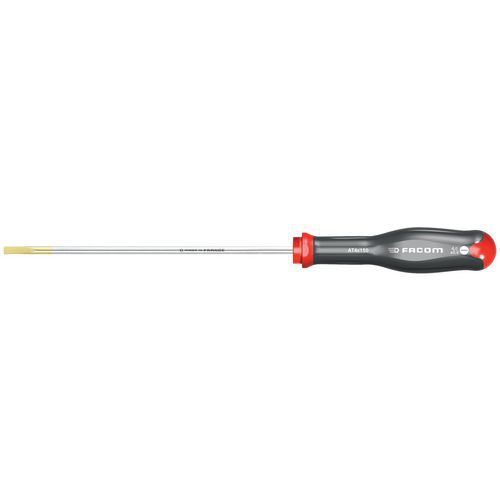 Descriptif du produit :Tournevis Protwist® embout plat Embout largeur : 4 mm Empreinte vis : Fente Lame longueur : 300 mm Réf. Fabricant : AT4X300 Type de lame : Ronde Type d'embout : Plat Usage : Vissage Tournevis à lame cylindrique permettant l'accès dans les puits. Traitement thermique en ligne : + 100% de durée de vie et + 100% de résistance. Matière du manche : Soft Grip pour plus de confort et ...