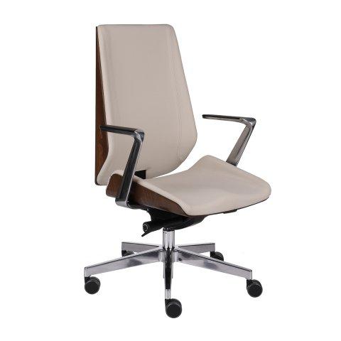 - La chaise de bureau MOON WOOD, lauréate du Diamant de l’industrie du meuble, se distingue par son dossier et son assise en bois soigneusement travaillés. Alliant design intemporel et fonctionnalités avancées, elle offre un confort et une efficacité optimaux au bureau.Ses accoudoirs multi-réglables, son mécanisme synchrone avec réglage en profondeur de l'assise et son dossier ajustable en hauteur permettent un confort personnalisé, sans même avoir à se lever.La qualité des matériaux et le soin apporté à la fabrication assurent une durabilité et une fiabilité exceptionnelles.Mécanisme :Synchrone, Lorsque le verrou d'une position sélectionnée est relâché, le dossier pivote dans un mouvement coordonné avec l'assise, imitant le mouvement de l'utilisateur dans le fauteuil. La résistance exercée par le dossier pendant le mouvement est réglable, ce qui permet de l'adapter au poids de l'utilisateur.L'utilisateur peut à tout moment verrouiller la position choisie (y compris la position de travail standard) et faire pivoter le dossier et l'assise en actionnant un levier situé sous l'assise. La fonction ANTI-CHOC empêche le dossier de heurter brusquement le dos de l'utilisateur lorsque l'on relâche la position d'inclinaison choisie.Dossier :Dossier fabriqué en bois de hêtre de haute qualité d'origine polonaise, teinté et verni avec un vernis à base d'eau de haute qualité, sans danger pour l'environnement et les personnes.L’assise est rembourrée, clairement profilée pour réduire la pression sur les cuisses et assurer une position ergonomique du bassin.Assise réglable en hauteur. Fabriquée en contreplaqué injecté de mousse de polyuréthane.