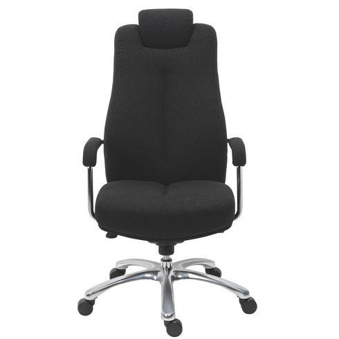 - Vous cherchez un bon fauteuil de qualité supérieure pour votre bureau ? Avec le fauteuil de bureau Extenso basculant décalé, les journées de travail vont vous paraître désormais moins longues.Spécialement conçu pour un usage quotidien intensif, ce fauteuil fabriqué entièrement en polyester convient parfaitement aux personnes de forte corpulence. Il peut supporter jusqu’à 150 kg. Il est doté de pieds en fonte d’aluminium. Ses roulettes renforcées permettront de le déplacer facilement sur des moquettes, ø 50 mm. Pourvu d’une assise généreuse avec ses 45 kg/m3 et de larges dimensions L 54 x P 51 cm, cet accessoire vous assurera un confort inégalé. Et avec sa têtière fixe, vous serez comblé ! La hauteur de l'assise est réglable de 46 à 51 cm. Son dossier, quant à lui, à une hauteur de 71 cm et il est fixe. Votre confort sera renforcé grâce à ses accoudoirs chromés, fixes également.Et une dernière qualité, et non des moindres, son tissu est 100 % polyester 24/24 h haute résistance.Ce fauteuil, avec un très bon rapport qualité-prix, est disponible chez Bruneau avec une garantie 5 ans.Fabriqué en Europe.