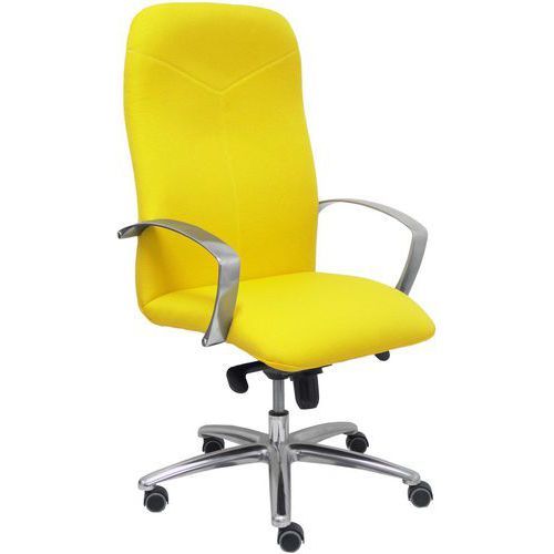 Fauteuil de direction Caudete Piqueras y crespo Accoudoir matériau : Chrome Accoudoir réglage : Fixe Assise coloris : Jaune Assise hauteur maxi : 54 cm Assise hauteur mini : 46 cm Assise largeur : 53 cm Assise matériau : Tissu Assise profondeur : 45 cm Assise réglable : oui Avec accoudoir : oui Coloris : Jaune Densité mousse assise : 25 kg/m³ Densité mousse dossier : 20 kg/m³ Dossier coloris : Jaune Dossier matériau : Tissu Impact Environnemental : E Matériau : Aluminium Mécanisme : Basculement axe centré Option montage : Option montage Piétement coloris : Argent Poids : 20000 g Poids maxi supporté : 100 kg Réglage hauteur d'assise : oui Réglage hauteur dossier : oui Système de réglage en hauteur : Vérin à gaz Fauteuil de direction Caudete Piqueras y crespo. Hauteur réglable au moyen d'un cylindre à gaz de 10 cm. Mécanisme d'inclinaison multipositions avec régulateur de tension (permet d'incliner la chaise vers l'arrière tout en maintenant l'angle entre le dossier et le siège). Siège et dossier rembourrés en tissu BALI. Bras fixes en aluminium poli Roulettes de parquet, chromées au gaz et pivotantes sur 360°. Fauteuil de direction Caudete, Avec accoudoir: oui, Assise matériau: Tissu, Dossier matériau: Tissu, Mécanisme: Basculement axe centré, Accoudoir réglage: Fixe, Coloris: Jaune, Matériau: Aluminium, Piétement coloris: Argent, Assise largeur: 53 cm, Assise profondeur: 45 cm, Assise hauteur mini: 46 cm, Assise hauteur maxi: 54 cm, Accoudoir matériau: Chrome, Densité mousse assise: 25 kg/m³, Densité mousse dossier: 20 kg/m³, Système de réglage en hauteur: Vérin à gaz, Poids: 20000 g, Réglage hauteur dossier: oui, Poids maxi supporté: 100 kg, Assise réglable: oui, Réglage hauteur d'assise: oui, Assise coloris: Jaune, Dossier coloris: Jaune