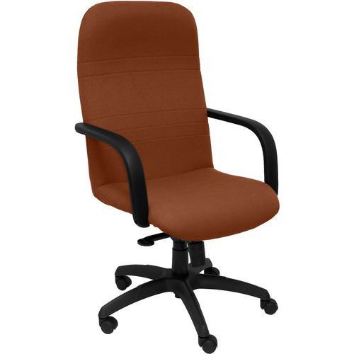 Fauteuil de direction Letur Piqueras y crespo Accoudoir matériau : Chrome Accoudoir réglage : Fixe Assise coloris : Marron Assise hauteur maxi : 55 cm Assise hauteur mini : 48 cm Assise largeur : 47 cm Assise matériau : Tissu Assise profondeur : 47 cm Assise réglable : oui Avec accoudoir : oui Coloris : Marron Densité mousse assise : 25 kg/m³ Densité mousse dossier : 25 kg/m³ Dossier coloris : Marron Dossier matériau : Tissu Ergonomique : oui Impact Environnemental : D Matériau : Polyamide Option montage : Option montage Piétement coloris : Noir Poids : 18000 g Réglage hauteur d'assise : oui Réglage hauteur dossier : oui Système de réglage en hauteur : Vérin à gaz Fauteuil de direction Letur Piqueras y crespo. Hauteur réglable au moyen d'un cylindre à gaz de 10 cm. Mécanisme d'inclinaison multipositions avec régulateur de tension (permet d'incliner la chaise vers l'arrière tout en maintenant l'angle entre le dossier et le siège). Siège et dossier rembourrés en tissu BALI. Bras fixes noirs. Fauteuil de direction Letur, Avec accoudoir: oui, Assise matériau: Tissu, Dossier matériau: Tissu, Accoudoir réglage: Fixe, Coloris: Marron, Matériau: Polyamide, Piétement coloris: Noir, Assise largeur: 47 cm, Assise profondeur: 47 cm, Assise hauteur mini: 48 cm, Assise hauteur maxi: 55 cm, Accoudoir matériau: Chrome, Densité mousse assise: 25 kg/m³, Densité mousse dossier: 25 kg/m³, Système de réglage en hauteur: Vérin à gaz, Poids: 18000 g, Réglage hauteur dossier: oui, Assise réglable: oui, Réglage hauteur d'assise: oui, Assise coloris: Marron, Dossier coloris: Marron