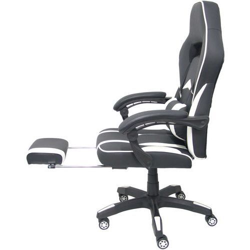 Fauteuil de gaming Bonete similicuir Foröl Assise coloris : Blanc/noir Assise matériau : Tissu Assise réglable : oui Avec accoudoir : oui Coloris : Blanc/noir Dossier coloris : Blanc/noir Dossier matériau : Tissu Ergonomique : oui Inclinaison maxi : 135 ° Inclinaison mini : 90 ° Poids : 19000 g Réglage hauteur d'assise : oui Réglage hauteur dossier : oui Têtière : oui Fauteuil de gaming Bonete similicuir Foröl. Mécanisme d'inclinaison Hauteur réglable par cylindre à gaz. Assise et dossier recouverts en similicuir. Bras inclinables et reposepieds amovibles. Pivotant à 360º, base en nylon et roulettes en nylon. Fauteuil de gaming Bonete similicuir, Avec accoudoir: oui, Assise matériau: Tissu, Têtière: oui, Ergonomique: oui, Assise coloris: Blanc/noir, Dossier coloris: Blanc/noir, Coloris: Blanc/noir, Dossier matériau: Tissu, Inclinaison maxi: 135 °, Poids: 19000 g, Réglage hauteur dossier: oui, Inclinaison mini: 90 °, Assise réglable: oui, Réglage hauteur d'assise: oui