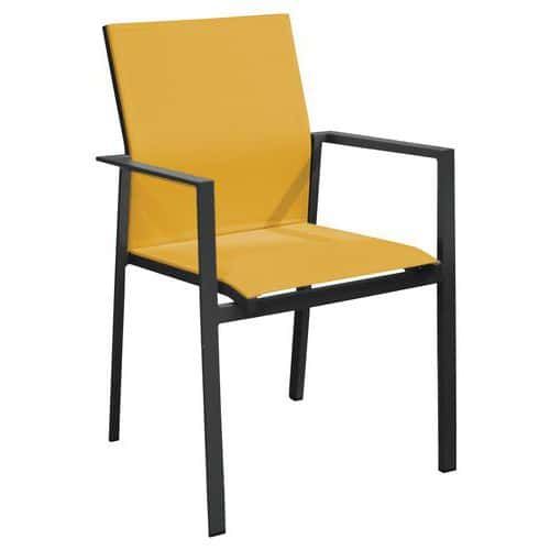 Fauteuil DELIA TPEP/alu Proloisirs Assise coloris : Jaune Assise hauteur : 46 cm Assise largeur : 42 cm Assise matériau : Polyester Dossier coloris : Jaune Dossier matériau : Polyester Empilable : oui Environnement : Intérieur et extérieur Fréquence d'utilisation : Régulière Garantie client : 2 ans Hauteur hors tout : 86.5 cm Largeur hors tout : 59.5 cm Livré monté : oui Piétement coloris : Gris foncé Poids : 3.5 kg Profondeur hors tout : 56 cm Type de pied : Patins Type de piétement : 4 pieds Type de siège : Fauteuil Usage : Collectivité Fauteuil Delia avec structure en aluminium, époxy. Proteection contre les UV. Assise et dossier en TPEP (Toile Polyester Enduit Perforée). Confortable, léger, pratique à utiliser, à transporter et à range. Livré monté Fauteuil DELIA TPEP/alu Proloisirs, Assise matériau: Polyester, Dossier matériau: Polyester, Largeur hors tout: 59.5 cm, Type de siège: Fauteuil, Assise coloris: Jaune, Dossier coloris: Jaune, Piétement coloris: Gris foncé, Assise hauteur: 46 cm, Livré monté: oui, Type de piétement: 4 pieds, Type de pied: Patins, Hauteur hors tout: 86.5 cm, Fréquence d'utilisation: Régulière, Poids: 3.5 kg, Empilable: oui, Usage: Collectivité, Assise largeur: 42 cm, Profondeur hors tout: 56 cm