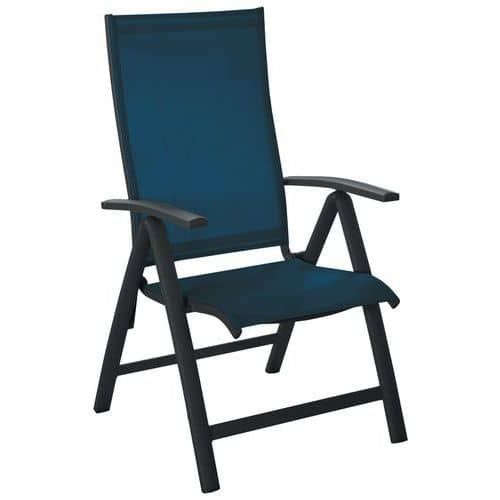 Fauteuil ELEGANCE multipositions TPEP/alu Proloisirs Assise coloris : Bleu Assise hauteur : 45 cm Assise matériau : Polyester Dossier coloris : Bleu Dossier matériau : Polyester Environnement : Intérieur et extérieur Fréquence d'utilisation : Régulière Garantie client : 2 ans Hauteur hors tout : 108 cm Largeur hors tout : 70 cm Livré monté : oui Piétement coloris : Gris foncé Poids : 5.7 kg Profondeur hors tout : 61 cm Type de pied : Patins Type de piétement : En V Type de siège : Fauteuil Usage : Collectivité Fauteuil Elégance pliant avec structure en aluminium, époxy. Assise et dossier en TPEP (Toile Polyester Enduit Perforée). Dossier haut, inclinaison réglable en 5 positions par les accoudoirs. Très confortable, facile d'entretien. Livré monté Fauteuil ELEGANCE multipositions TPEP/alu Proloisirs, Assise matériau: Polyester, Dossier matériau: Polyester, Largeur hors tout: 70 cm, Type de siège: Fauteuil, Assise coloris: Bleu, Dossier coloris: Bleu, Piétement coloris: Gris foncé, Assise hauteur: 45 cm, Livré monté: oui, Type de piétement: En V, Type de pied: Patins, Hauteur hors tout: 108 cm, Fréquence d'utilisation: Régulière, Poids: 5.7 kg, Usage: Collectivité, Profondeur hors tout: 61 cm