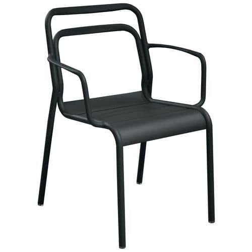 Fauteuil EOS alu Proloisirs Assise coloris : Noir Assise hauteur : 45 cm Assise largeur : 39.5 cm Assise matériau : Aluminium Dossier coloris : Noir Dossier matériau : Aluminium Empilable : oui Environnement : Intérieur et extérieur Fréquence d'utilisation : Régulière Garantie client : 2 ans Hauteur hors tout : 82 cm Largeur hors tout : 58 cm Livré monté : oui Piétement coloris : Noir Poids : 3.6 kg Profondeur hors tout : 58 cm Type de pied : Patins Type de piétement : 4 pieds Type de siège : Fauteuil Usage : Collectivité Fauteuil Eos 100% aluminium, époxy. Tubes de 25 mm. Assise lattes galbées. Confortable, très léger, pratique à utiliser, à transporter et à ranger, empilable. Résiste à la corrosion, le froid, la pluie ou les UV Fauteuil EOS alu Proloisirs, Assise matériau: Aluminium, Dossier matériau: Aluminium, Largeur hors tout: 58 cm, Type de siège: Fauteuil, Assise coloris: Noir, Dossier coloris: Noir, Piétement coloris: Noir, Assise hauteur: 45 cm, Livré monté: oui, Type de piétement: 4 pieds, Type de pied: Patins, Hauteur hors tout: 82 cm, Fréquence d'utilisation: Régulière, Poids: 3.6 kg, Empilable: oui, Usage: Collectivité, Assise largeur: 39.5 cm, Profondeur hors tout: 58 cm