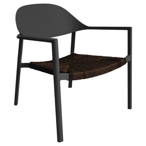 Fauteuil lounge BAGE wicker/alu Proloisirs Assise coloris : Noir Assise hauteur : 46 cm Assise largeur : 46 cm Assise matériau : Résine Dossier coloris : Noir Dossier matériau : Aluminium Empilable : non Environnement : Intérieur et extérieur Fréquence d'utilisation : Régulière Garantie client : 2 ans Hauteur hors tout : 68 cm Largeur hors tout : 66 cm Livré monté : oui Piétement coloris : Gris foncé Poids : 5 kg Profondeur hors tout : 60 cm Type de pied : Patins Type de piétement : 4 pieds Type de siège : Fauteuil Usage : Collectivité Fauteuil détente BAGE avec structure aluminium, époxy. Empilable. Assise fils de résine polyéthylène, façon paille de seigle. Confortable grâce à son assise synthétique façon paille de seigle, et au dossier incurvé Fauteuil lounge BAGE wicker/alu Proloisirs, Assise matériau: Résine, Dossier matériau: Aluminium, Largeur hors tout: 66 cm, Type de siège: Fauteuil, Assise coloris: Noir, Dossier coloris: Noir, Piétement coloris: Gris foncé, Assise hauteur: 46 cm, Livré monté: oui, Type de piétement: 4 pieds, Type de pied: Patins, Hauteur hors tout: 68 cm, Fréquence d'utilisation: Régulière, Poids: 5 kg, Empilable: non, Usage: Collectivité, Assise largeur: 46 cm, Profondeur hors tout: 60 cm