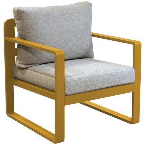 Fauteuil MOJITO coussins/alu Proloisirs Assise coloris : Gris Assise hauteur : 44 cm Assise largeur : 58 cm Assise matériau : Polyester Dossier coloris : Gris Dossier matériau : Polyester Empilable : non Environnement : Intérieur et extérieur Fréquence d'utilisation : Régulière Garantie client : 2 ans Hauteur hors tout : 69 cm Largeur hors tout : 70 cm Livré monté : non Montage : À monter Piétement coloris : Jaune foncé Poids : 20.3 kg Profondeur hors tout : 73 cm Type de pied : Patins Type de piétement : En U Type de siège : Fauteuil Usage : Collectivité Fauteuil de détente MOJITO avec structure en aluminium, époxy. Coussins d’assise et dossier déhoussables. Densité coussins d'assise : 25 kg/m3. Tissu polyester 260gr/m², traitement déperlant Fauteuil MOJITO coussins/alu Proloisirs, Assise matériau: Polyester, Dossier matériau: Polyester, Largeur hors tout: 70 cm, Type de siège: Fauteuil, Assise coloris: Gris, Dossier coloris: Gris, Piétement coloris: Jaune foncé, Assise hauteur: 44 cm, Livré monté: non, Type de piétement: En U, Type de pied: Patins, Montage: À monter, Hauteur hors tout: 69 cm, Fréquence d'utilisation: Régulière, Poids: 20.3 kg, Empilable: non, Usage: Collectivité, Assise largeur: 58 cm, Profondeur hors tout: 73 cm