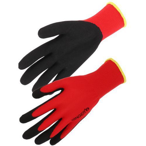 Descriptif du produit :Gant de manutention enduction nitrile sable PER13NIF Singer Safety Coloris : Rouge/noir Enduction matière : Nitrile Gant protection : Mécanique Gant taille : 7 Jauge gant : 13 Matière : Polyester Norme EN 388 : 4131X Surface d'enduction : Paume Gants de protection en polyester, tricoté une pièce. Jauge 13. Poignet en tricot élastique avec liseré. Enduction en nitrile sablà ...