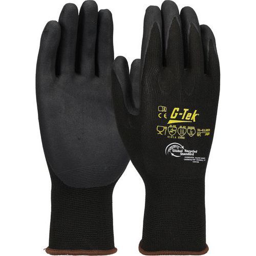 Gants tricotés PET avec poignée enduction mousse nitrile ESD GTEK CE : oui Coloris : Noir Compatible écran tactile : oui Enduction matière : Nitrile Gant protection : Mécanique Gant taille : 9 Jauge gant : 15 Nb de paires : 6 Surface d'enduction : 3/4 main Usage alimentaire : non Usage unique : non Les gants tricotés PET avec poignée enduction mousse nitrile ESD sont conçus pour protéger contre les décharges électrostatiques, tout en offrant une excellente prise en main. Leur mousse de nitrile garantit une résistance aux abrasions et une flexibilité optimale. Idéals pour les environnements où la protection contre les décharges électrostatiques est essentielle, ces gants sont légers et confortables. Leur tricot en PET assure une bonne ventilation et un ajustement parfait. Parfaits pour les tâches nécessitant précision et sécurité. Gants tricotés PET avec poignée enduction mousse nitrile ESD, Enduction matière: Nitrile, Surface d'enduction: 3/4 main, Coloris: Noir, Gant taille: 9, Gant protection: Mécanique, Usage unique: non, Jauge gant: 15, Nb de paires: 6, Compatible écran tactile: oui, CE: oui, Usage alimentaire: non