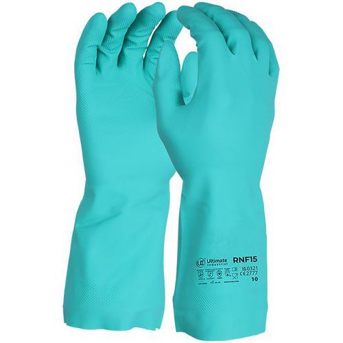Gants de protections chimiques doublés coton Bleu PIP CE : oui Coloris : Vert Gant protection : Chimique Gant taille : 11 Matière textile : Nitrile Nb de paires : 10 Norme EN 3741 : oui Norme EN 3745 : Virus Usage alimentaire : non Usage unique : non Les gants de protection chimique doublés coton bleus sont parfaits pour les environnements où une protection contre les produits chimiques et une prise confortable sont nécessaires. Leur doublure en coton assure une sensation agréable tout en offrant une protection renforcée contre les risques chimiques. Ces gants sont souples et adaptés à des tâches de précision, offrant à la fois sécurité et confort. Idéals pour des applications industrielles ou de nettoyage. Gants de protections chimiques doublés coton, Matière: Nitrile, Coloris: Vert, Gant taille: 11, Usage unique: non, Nb de paires: 10, Gant protection: Chimique, CE: oui, Usage alimentaire: non