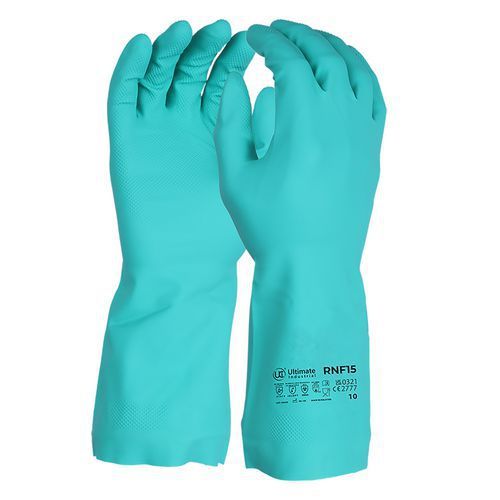 Gants de protections chimiques doublés coton Bleu PIP CE : oui Coloris : Vert Gant protection : Chimique Gant taille : 7 Matière textile : Nitrile Nb de paires : 10 Norme EN 3741 : oui Norme EN 3745 : Virus Usage alimentaire : non Usage unique : non Les gants de protection chimique doublés coton bleus sont parfaits pour les environnements où une protection contre les produits chimiques et une prise confortable sont nécessaires. Leur doublure en coton assure une sensation agréable tout en offrant une protection renforcée contre les risques chimiques. Ces gants sont souples et adaptés à des tâches de précision, offrant à la fois sécurité et confort. Idéals pour des applications industrielles ou de nettoyage. Gants de protections chimiques doublés coton, Matière: Nitrile, Coloris: Vert, Gant taille: 7, Usage unique: non, Nb de paires: 10, Gant protection: Chimique, CE: oui, Usage alimentaire: non