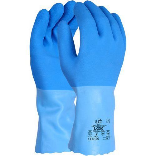 Gants de protections chimiques finition latex crêpé PIP CE : oui Coloris : Bleu/bleu clair Gant protection : Chimique Gant taille : 8 Matière textile : Latex Nb de paires : 6 Norme EN 3741 : oui Norme EN 3745 : Virus Usage alimentaire : non Usage unique : non Les gants de protection chimique avec finition latex crêpé PIP offrent une excellente résistance aux produits chimiques tout en garantissant une prise antidérapante. Leur finition crêpée permet une prise sûre, même dans des conditions humides ou huileuses. Ces gants sont légers, confortables et adaptés à des environnements de travail exigeants. Parfaits pour les professionnels cherchant à allier protection contre les produits chimiques et flexibilité. Gants de protections chimiques finition latex crêpé, Matière: Latex, Coloris: Bleu/bleu clair, Gant taille: 8, Usage unique: non, Nb de paires: 6, Gant protection: Chimique, CE: oui, Usage alimentaire: non