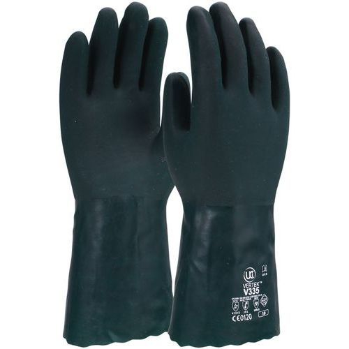 Gants de protections chimiques PVC finition granuleuse Noir PIP CE : oui Coloris : Vert Gant protection : Chimique Gant taille : 9 Matière textile : PVC Nb de paires : 12 Norme EN 3741 : oui Norme EN 3745 : Virus Usage alimentaire : non Usage unique : non Les gants de protection chimique PVC noirs à finition granuleuse sont conçus pour offrir une résistance optimale aux produits chimiques tout en garantissant une prise antidérapante. Leur finition granuleuse permet une meilleure adhérence, même dans des conditions humides ou huileuses. Ces gants sont à la fois durables et confortables, idéaux pour les applications industrielles ou chimiques. Leur conception garantit une protection fiable sans compromettre la dextérité. Gants de protections chimiques PVC finition granuleuse, Matière: PVC, Coloris: Vert, Gant taille: 9, Usage unique: non, Nb de paires: 12, Gant protection: Chimique, CE: oui, Usage alimentaire: non