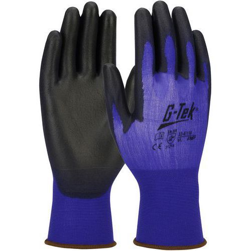 Gants tricotés nylon enduction polyuréthane GTEK CE : oui Coloris : Noir/bleu Compatible écran tactile : oui Enduction matière : Polyuréthane Gant protection : Mécanique Gant taille : 11 Jauge gant : 18 Matière textile : Nylon Nb de paires : 12 Surface d'enduction : 3/4 main Usage alimentaire : non Usage unique : non Les gants tricotés nylon enduction polyuréthane offrent une protection légère et flexible tout en assurant une prise ferme. Leur enduction polyuréthane assure une résistance à l’abrasion et une protection contre les coupures légères. Ces gants sont idéals pour les tâches de précision nécessitant une dextérité optimale. Leur tricot en nylon assure un confort et une respirabilité exceptionnels. Pratiques et résistants, ils sont parfaits pour les environnements industriels ou de manutention légère. Gants tricotés nylon enduction polyuréthane, Enduction matière: Polyuréthane, Matière: Nylon, Surface d'enduction: 3/4 main, Coloris: Noir/bleu, Gant taille: 11, Gant protection: Mécanique, Usage unique: non, Jauge gant: 18, Nb de paires: 12, Compatible écran tactile: oui, CE: oui, Usage alimentaire: non