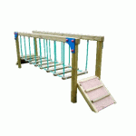 Descriptif du produit :Structure : Pin du Nord imprégné en autoclave class IV. Montants sont constitués par des poteaux cadres section 9 x 9 cm.Composition : 6 éléments : 1 filet à grimper avec cordage en polypropylène armé et jonction en plastique, 1 mât de pompiers en acier rond galvanisé, 1 espalier avec barreaux en iroko Ø 45 mm, 1 corde à grimper armée, 1 paire d\'anneaux, 1 barre horizontale bass ...
