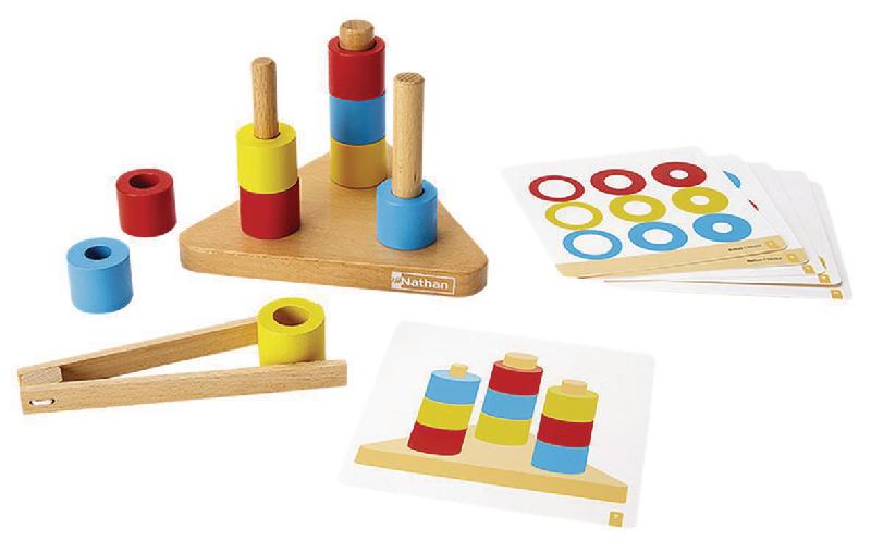 Descriptif du produit :La boîte contient : 1 livret pédagogique.6 fiches recto verso, soit 12 activités (L/l : 12 x 12 cm).1 socle (L/ép. : 15,2 x 1,5 cm).1 pince (L/l : 14 x 4 cm)9 cylindres en bois verni (Ø : 3 cm).1 support en bois pour positionner les fiches.