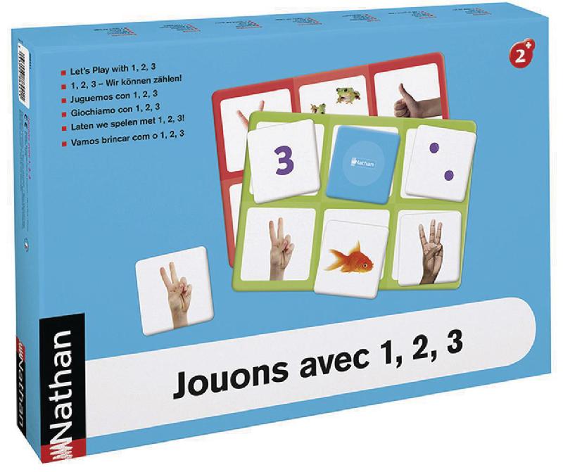 Descriptif du produit :La boîte contient : 6 planches (33 x 23 cm). 36 cartes (10 x 10 cm). 2 dés de 1 à 3 : constellations et doigts de la main (arête dé : 3,2 cm). 1 livret pédagogique.