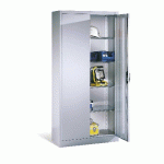 Structure tôle électrozinguée ép. 10/10 ème.Portes tôle électrozinguée ép. 10/10 ème, indégondables en position ouverte ou fermée avec oméga de renfort soudé sur chaque porte (rigidité accrue). Tablette intérieure galvanisée évitant les rayures.Fermeture 3 points par serrure unique (accès sécurisé), fermeture de chaque casier par moraillon porte-cadenas 3 points dans boîtier ...