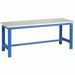 Descriptif du produit :Pour travaux d’assemblage légers. Plateau mélaminéé gris épaisseur 20 mm. Chant droit 2 mm en ABS finition cérusée. Châssis bleu RAL 5015 composé de 2 pieds échelle en tube 40 x 40 et 3 entretoises en tôle pliée 25/10ème. Charge maxi : 500 kg. 4 embouts plastique de protection au sol. Hauteur/profondeur établi : 82 x 75 cm.