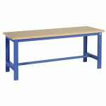 Descriptif du produit :Plateau mélaminé gris épaisseur 38 mm. Chant droit 2 mm en ABS. Piètements en tôle d’acier pliée épaisseur 25/10e en U 8 x 4,2 cm. Traverse repose-pieds centrée. Peinture époxy Bleu Ral 5015.Assemblage par boulonnage. Côtés assemblés par mécano-soudure. Châssis fixe hauteur 80 cm sous plateau.Livré démonté.