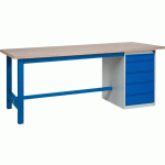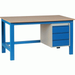 ETABLI SI40 PLATEAU MÉLAMINÉ 1800X750 + 3 TIROIRS PIÈTEMENT BLEU RAL 5015 - MANUTAN COLLECTIVITÉS
