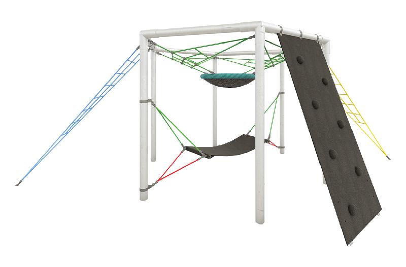 Descriptif du produit :Construction hexagonale réalisée en tube acier galvanisé à chaud (Ø 102 mm), longueur 3.00 m1 filet toile d’araignée2 filets à grimper triangulaires1 mur d’escalade en bois contreplaqué multiplis, avec prises pour les mains et les pieds1 Mini-Nid d’oiseau (Ø 0.90 m) avec cordes de suspension2 échelles avec échelons plastique1 hamac en caoutchoucFilets et cordages en câble Hercule ...