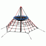 Descriptif du produit :1 mât en acier (Ø 200 mm), longueur 5 m, avec manchon de protection en Inox1 mécanisme de rotation1 structure en filet1 octogone en aluminiumCordages et filets en câble Hercule Ø 16 mmØ zone d\'impact 8 mØ jeu : 3,50 mColoris : conforme à l’imageLe câble Hercule est composé de 6 torons acier de Ø 2.5 mm, eux-mêmes composés de 7 fils zingués. Ce procédé de fabrication lui confère ...