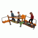 Conforme à la norme EN1176.Poteaux et traverses de plancher en lamellé collé de pin traité autoclave classe IV lasuré.Panneaux en stratifié compact (HPL) de couleur, épaisseur 10 ou 13 mm. Plancher en stratifié compact (HPL) antidérapant, épaisseur 14 mm. Boulonnerie, tubes et mains courantes en acier inoxydable.Platine de fixation sol meuble ou sol béton en acier galvanisé empêchant le contact des poteaux avec le sol.