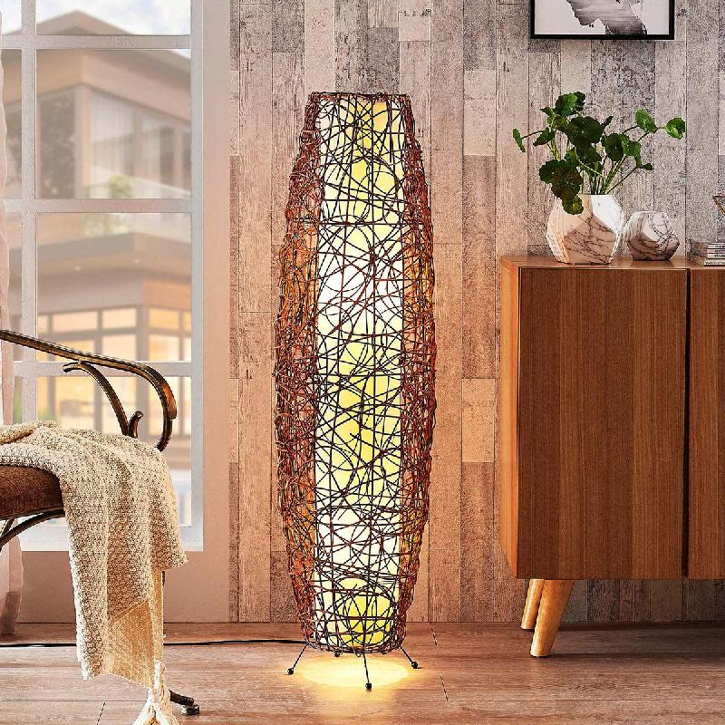 Descriptif du produit :Pour une ambiance naturelle dans la pièce à vivre : la lampe sur pied en rotin Nias avec abat-jour intérieur blanc en tissu Nias est particulièrement appréciée dans les pièces à vivre où l\'on a attaché de l\'importance à un rayonnement aussi naturel que possible. L\'abat-jour extérieur de la lampe sur pied a une forme bulbeuse et est réalisé en rotin tressé de manière irrégulièr ...