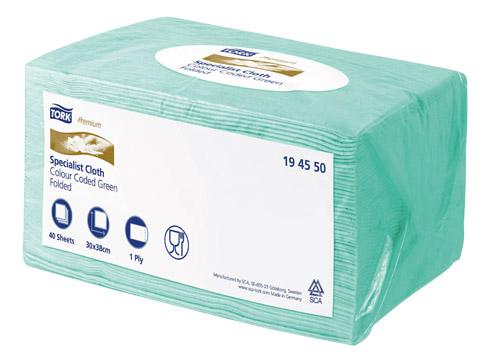 CHIFFON DE NETTOYAGE VERT TORK LONGUE DURÉE W8, MULTI-USAGES, 40 CHIFFONS