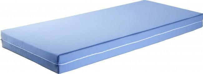 Mousse polyuréthane HR35Kg/m3. Housse 100% polyester classé non feu M1 175g/m², coloris bleu.Avec fermeture à glissière inversée sur 2 côtés. Lavage jusque 90°et séchage au tambour autorisé.