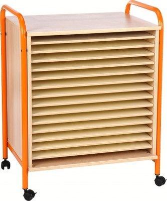 Descriptif du produit :En panneau de particules surfacé mélaminé épaisseur 19 mm.Chants polypropylène épaisseur 2 mm.Corps coloris hêtre et tablettes coloris coquille d\'oeuf.Arceau en tube Ø 25 mm épaisseur 1,2 mm, revêtu époxy.Livré non monté.L/H/P utiles des cases : 69 x 3,3 x 55 cm.76 kg.