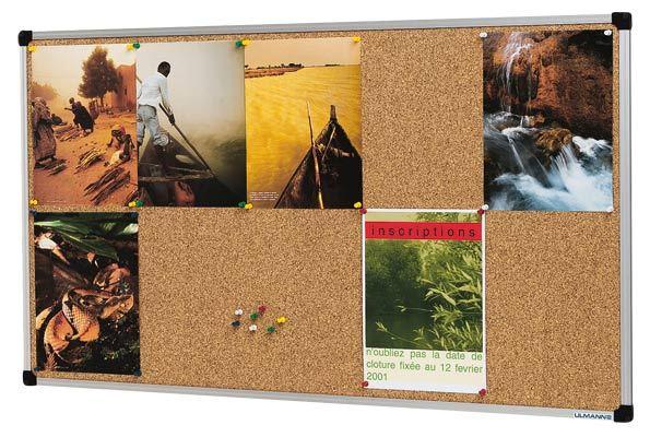 Fond tôle, affichage magnétique ou écriture au feutre effaçable à sec. Fond liège, affichage à l\'aide de punaises ou d\'épingles (liège ép.1 mm). Liège aggloméré sur support en fibres de bois basse densité ép. 8 mm. Profilé en aluminium anodisé. Livrés montés.