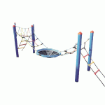 Descriptif du produit :3 poteaux en acier galvanisé à chaud (Ø 102 mm), longueurs 3.00 m, 2.40 m et 2.00 m, avec chapeaux PE 2 Nids d’oiseau (Ø 1.20 m)1 cerceau cerclé de cordage (Ø 1.20 m)1 corde à marcher en PP Ø 65 mm avec lianes suspendues1 échelle horizontale avec échelons plastique1 bande caoutchouc1 échelle à grimper simple avec échelons plastique1 échelle à grimper double avec échelons plastiqu ...